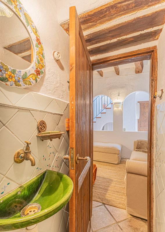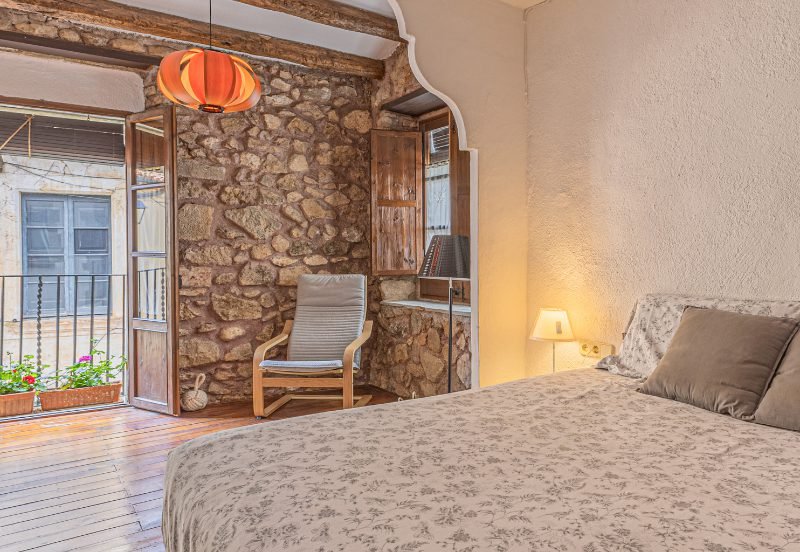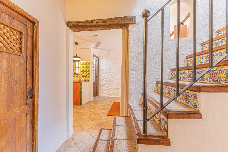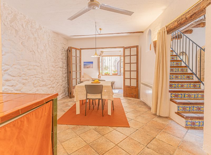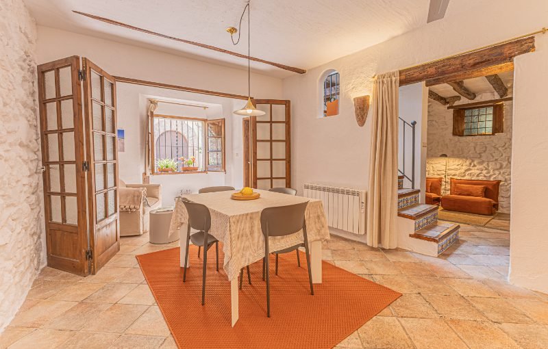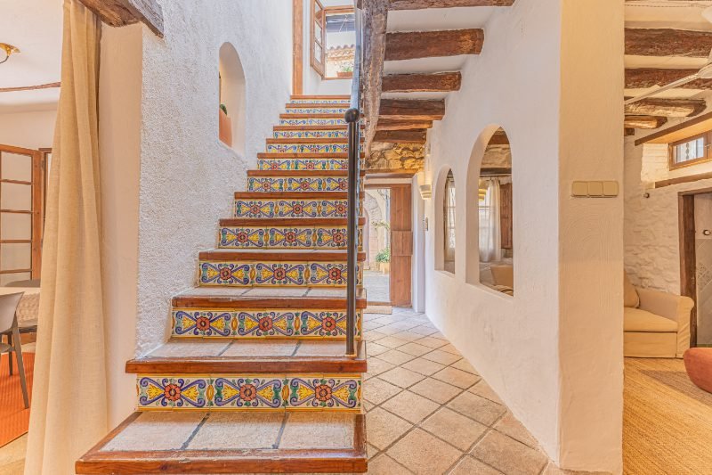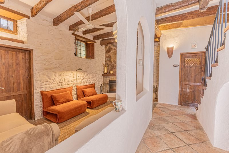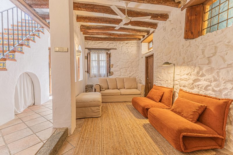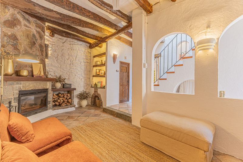 Reportatge fotogràfic d’una casa de poble tradicional al centre històric de Caldetes, on destaquen la façana original de pedra, la llum natural i els interiors rústics. Les imatges capturen l’essència mediterrània de l’habitatge: estances càlides amb parets encalades, bigues de fusta i una escala ceràmica plena de color. El reportatge posa en valor la personalitat de la casa, els seus detalls artesanals i els espais acollidors que transmeten calma i autenticitat.