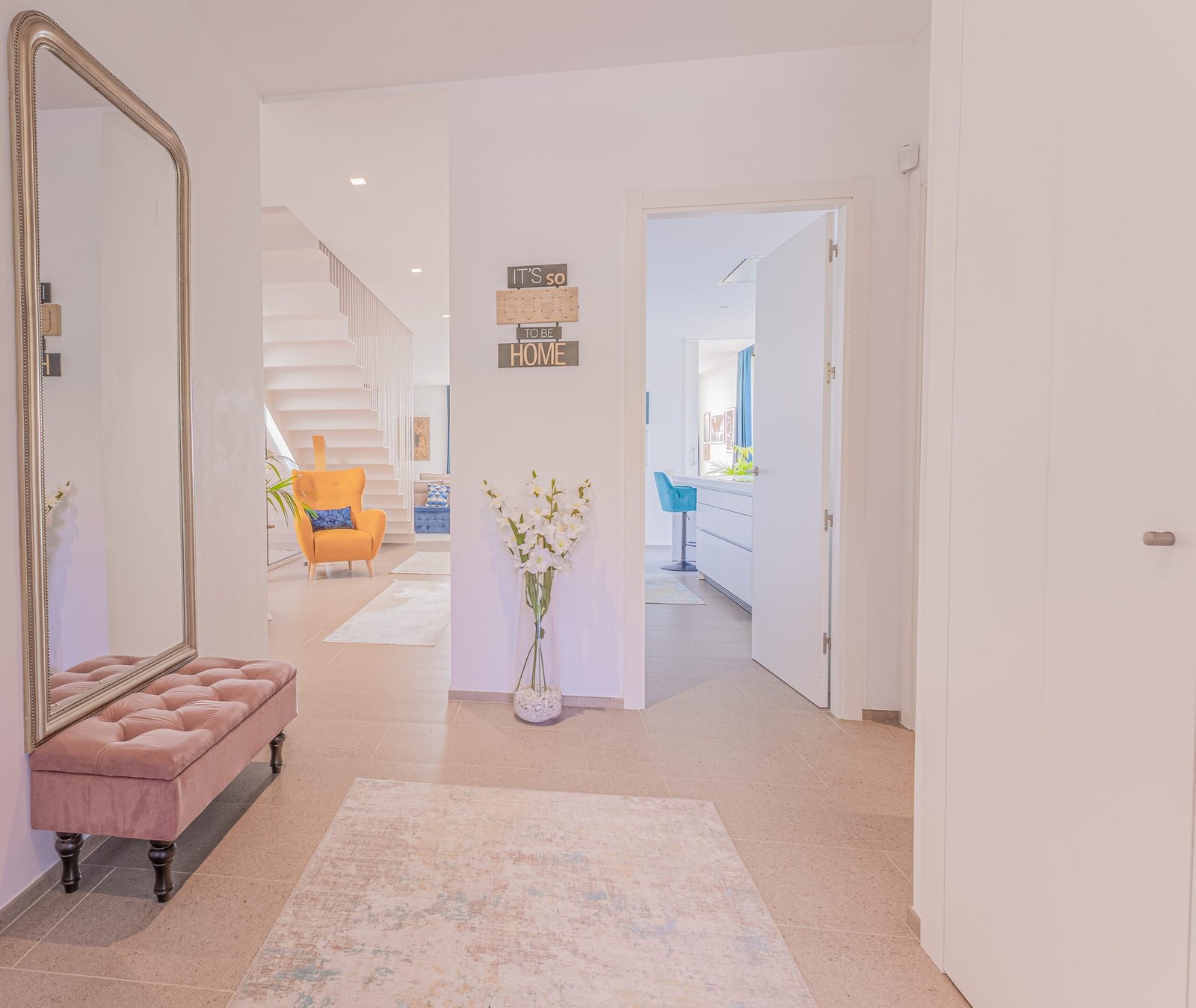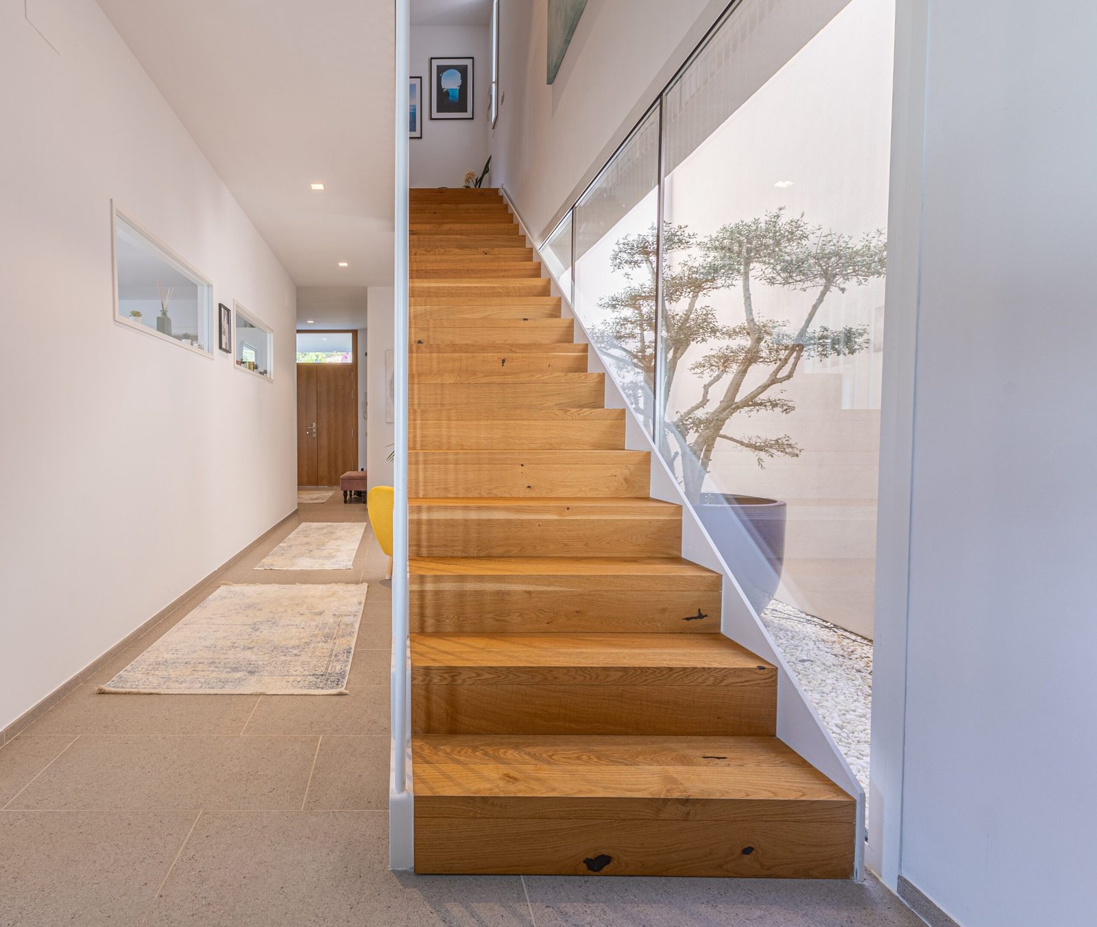 Reportatge fotogràfic d’un habitatge contemporani amb espais lluminosos i una clara connexió amb l’exterior. Les imatges mostren un interior d’estil actual, amb tons neutres, línies netes i peces de mobiliari que aporten color i personalitat. La doble alçada, les escales lleugeres i els grans finestrals reforcen la sensació d’amplitud i permeten que la llum natural esdevingui protagonista.